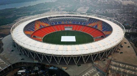 अहमदाबाद के नरेंद्र मोदी स्टेडियम में भारत और वेस्टइंडीज के टेस्ट मैच के दौरान खाली स्टैंड्स दिखने से …