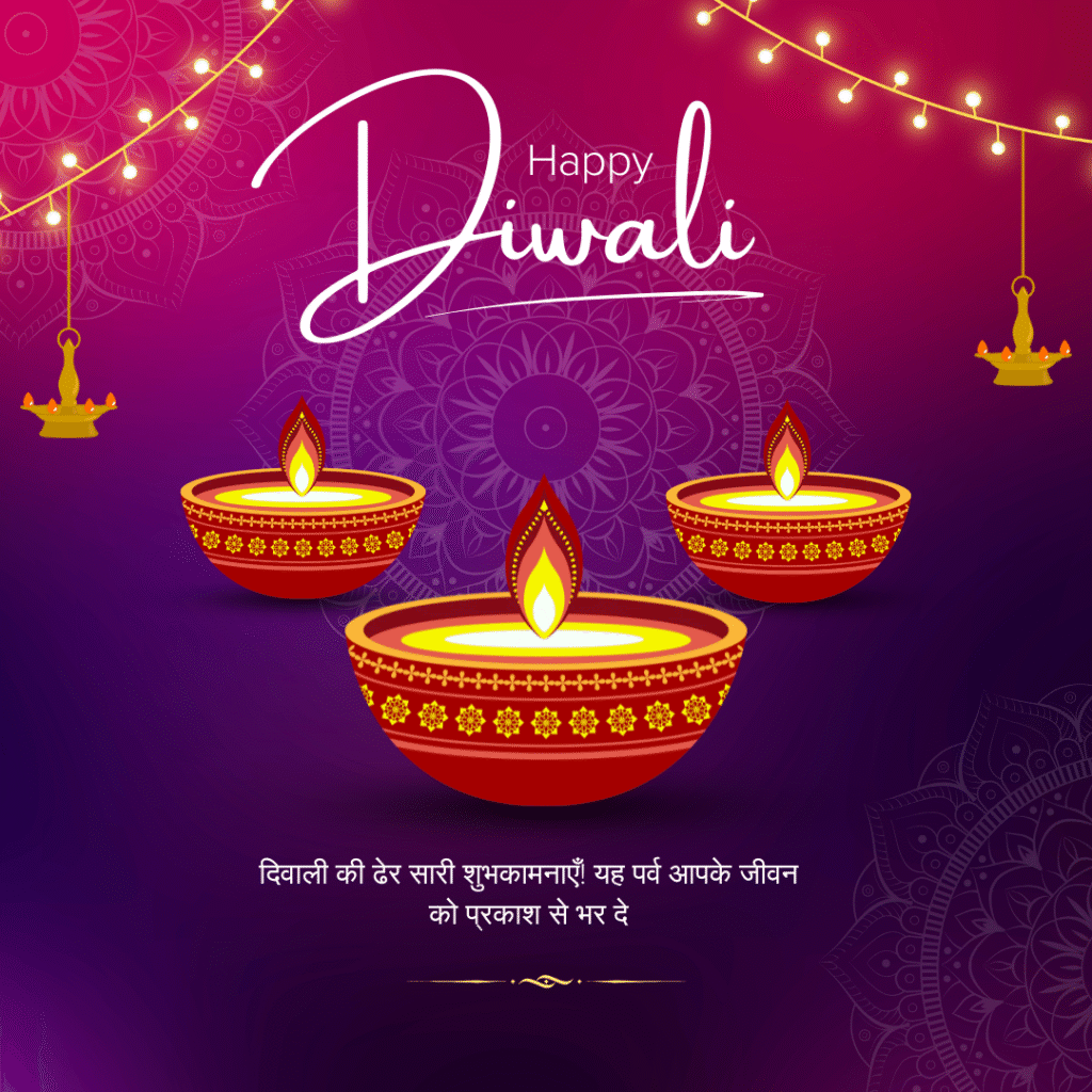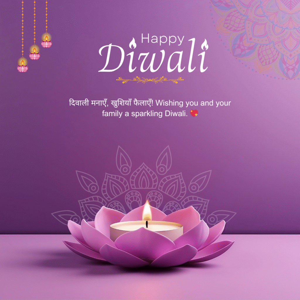 रोशनी और उल्लास से भरी इस दिवाली पर, आपको और आपके परिवार को हार्दिक शुभकामनाएँ। Happy Diwali!